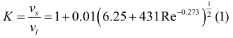 已知在紊流狀態(tài)下,流速修正系數(shù)K可寫成雷諾數(shù)的函數(shù):