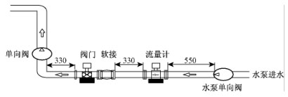 (2)在下坡道或水平管道并緊接管道出口處安裝流量計時,應在流量計下方安裝控制閥門,并與流量計保持一定距離。