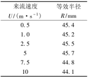 為了得到不同來流速度下的等效半徑,利用MATLAB對各組數據進行相應理論流速的插值運算,得到如表2所示的數據。
