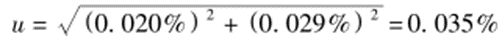 從上面計算可知:u(ΔV)=2.00×10-2L/100L×100%=0.020% 有效自由度νeff≈12