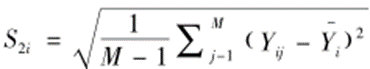 將M改為m,N改為n,Yij改為yij就是樣本的指標(biāo)值。第i群內(nèi)次級單元間的方差記為