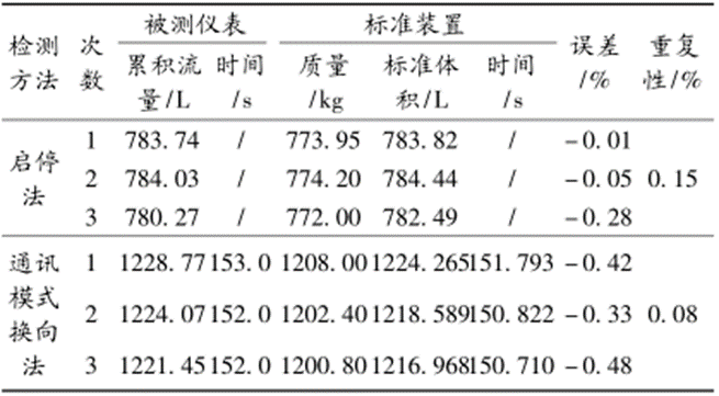 與啟停法相比,穩(wěn)定流動(dòng)下的換流也提高了檢測(cè)效率。以本試驗(yàn)為例,間歇采樣的時(shí)間間隔Δt為1s,若采用啟停法,則啟與停至少存在2s的狀態(tài)不確定性。為使2s內(nèi)所引入的誤差可以忽略不計(jì),則與總檢測(cè)時(shí)間之比應(yīng)小于被測(cè)儀表最大允許誤差絕對(duì)值的1/3。對(duì)于2級(jí)熱量表,流量的最大允許誤差為±2%,則總檢測(cè)時(shí)間至少應(yīng)為300s,而本試驗(yàn)中最長(zhǎng)時(shí)間約為135s,最短時(shí)間約為90s,二者相比效率提高明顯。