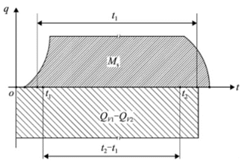 現(xiàn)定義檢測(cè)開(kāi)始時(shí)的這一組數(shù)據(jù)分別為初始時(shí)間t1,初始累積流量QV1,初始熱量Qh1,檢測(cè)結(jié)束時(shí)的一組數(shù)據(jù)分別為終止時(shí)間t2,終止累積流量QV2,終止熱量Qh2。標(biāo)準(zhǔn)裝置在ts時(shí)間內(nèi)記錄的累積質(zhì)量流量為Ms,熱量為Qhs。由于t2-t1通常不等于ts,這樣的檢測(cè)過(guò)程是不滿足同步計(jì)量的原則,故稱之為非同步。