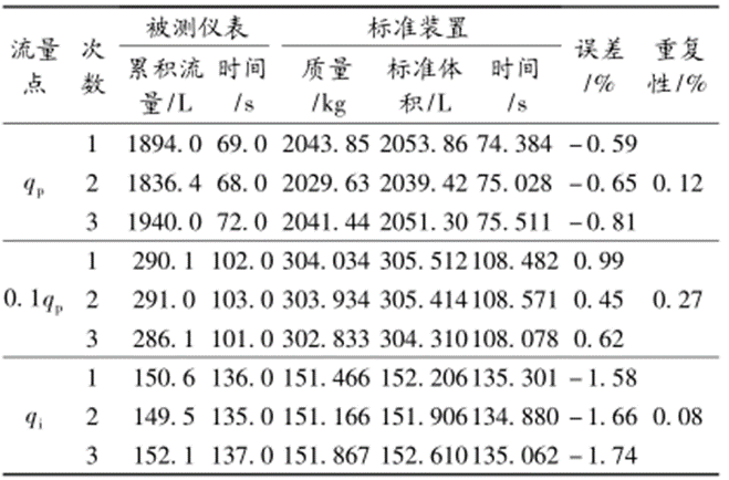 表1 DN150熱量表流量實(shí)驗(yàn)數(shù)據(jù)