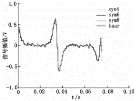 圖4 小波基sym4,sym6,sym8和haar重構信號