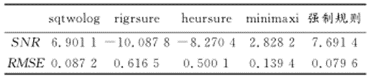 表2 不同閾值規則下的SNR和RMSE的統計數據